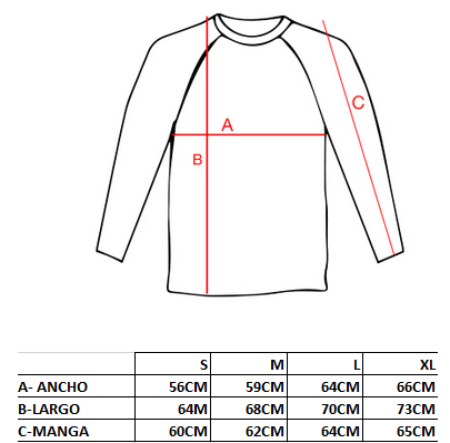 Mira nuestra tabla de medidas que esta a continuacion y comparala con la remera que te quede mas comoda! Te recomendamos que para tomar las medidas la apoyes en una mesa.