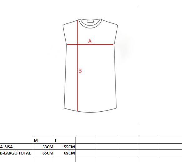 Mira nuestra tabla de medidas que esta a continuacion y comparala con la remera que te quede mas comoda! Te recomendamos que para tomar las medidas la apoyes en una mesa.